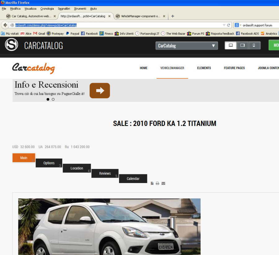 In the vehicle page the tabs are shown as you see in the attached photo